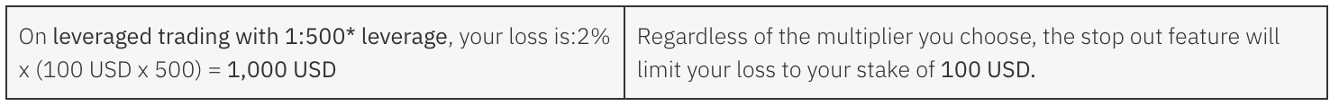 Risk losing no more than your initial stake with the automatic stop-out function — on every single trade.