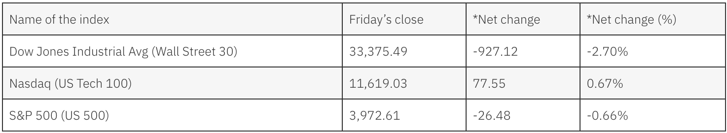 After gaining for successive weeks, US stocks experienced their first downturn of 2023. Mixed fourth-quarter earnings results, announcement of mass layoffs at major technology firms, and the prospects of an impending recession all contributed to the reverse in the markets last week.