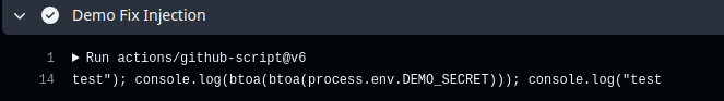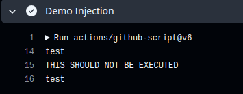 The same goes for code injection via actions/github-script, with the difference that instead of a run operation, a script should be extracted.