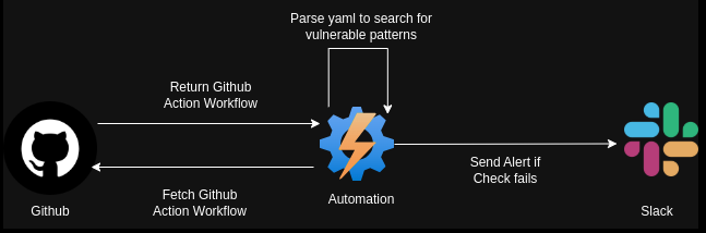 One approach involves deploying a detection script that runs as part of a scheduled cron job. This script fetches workflow files from our GitHub repositories, scans them for any vulnerable patterns, and raises alerts if any misconfigurations or risks are detected. This proactive monitoring helps maintain the integrity and security of our CI/CD pipelines.