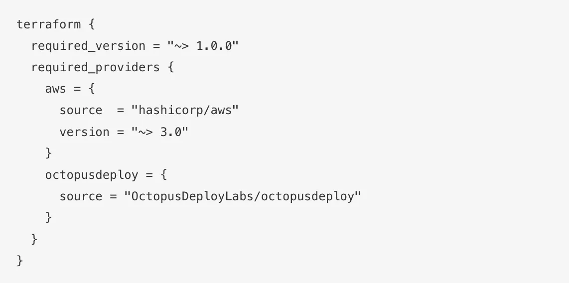 We defined the two providers required to provision and configure both AWS and Octopus Deploy Server with Terraform: