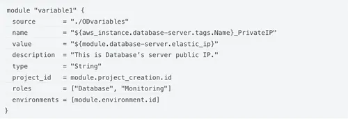 Using this resource, we managed to register on the Octopus Deploy Server all the public and private IP addresses, the hostnames, and the passwords of the newly created instances. The same variables were later on called within the processes running in Octopus Deploy.