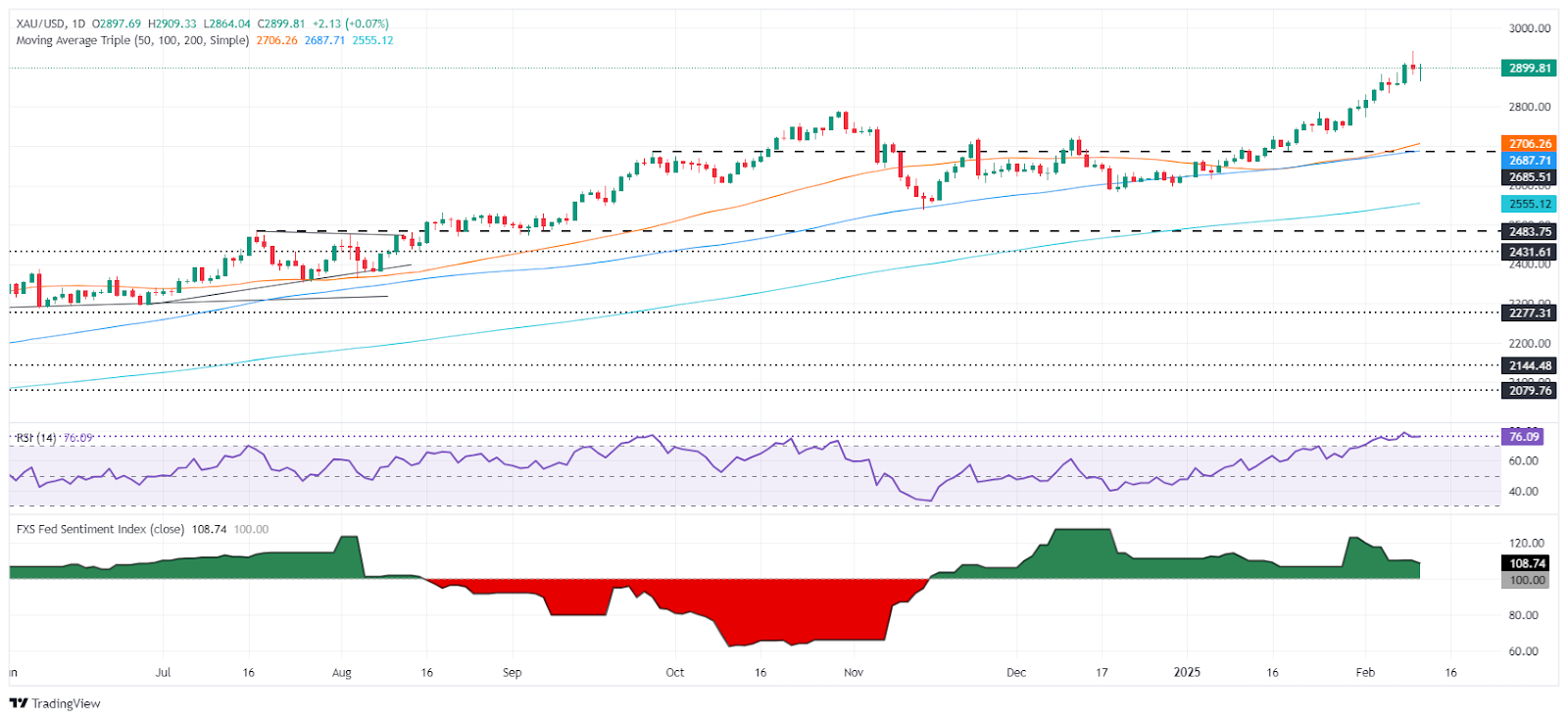 - Tendance haussière de l'or: Avec un support établi à 2 864 $, les traders devraient surveiller les cibles potentielles à la hausse à 2 961 $ et 2 982.