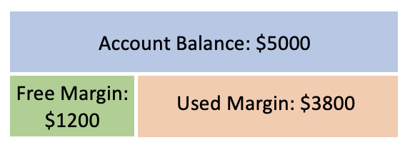 Ci sono 2 tipi di margine. Il margine utilizzato è l'importo di capitale attualmente utilizzato come garanzia per sostenere posizioni aperte. Il margine libero è l'importo rimanente di capitale disponibile per aprire nuove posizioni. Ad esempio, se il tuo saldo totale è di 5.000 USD e il margine utilizzato è di 3.800 USD, avrai 1.200 USD di margine libero per aprire nuove posizioni.