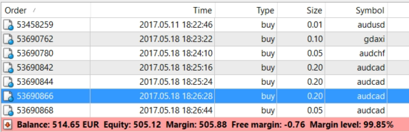 Ad esempio, se hai un conto con 1.000 USD di equity e apri un'operazione con un requisito di margine di 1.000 USD, nel caso in cui il mercato si muova contro di te, facendo scendere il tuo conto a 500 USD o meno (livello di margine del 50%), la tua operazione si chiuderà automaticamente.