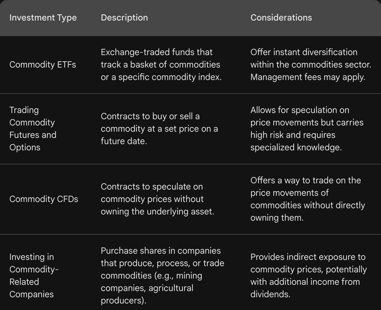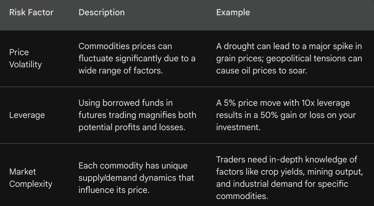Ważna uwaga: Handel towarami niesie ze sobą wrodzone ryzyka. Przed zainwestowaniem dokładnie zbadaj rynki i skonsultuj się z doradcą finansowym, jeśli to konieczne.