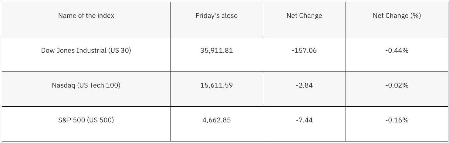 Miniony tydzień był wyboisty dla indeksów US. S&P 500, Nasdaq 100 i Dow Jones spadły w tym tygodniu odpowiednio o -0.16%, -0.02% i -0.44%.