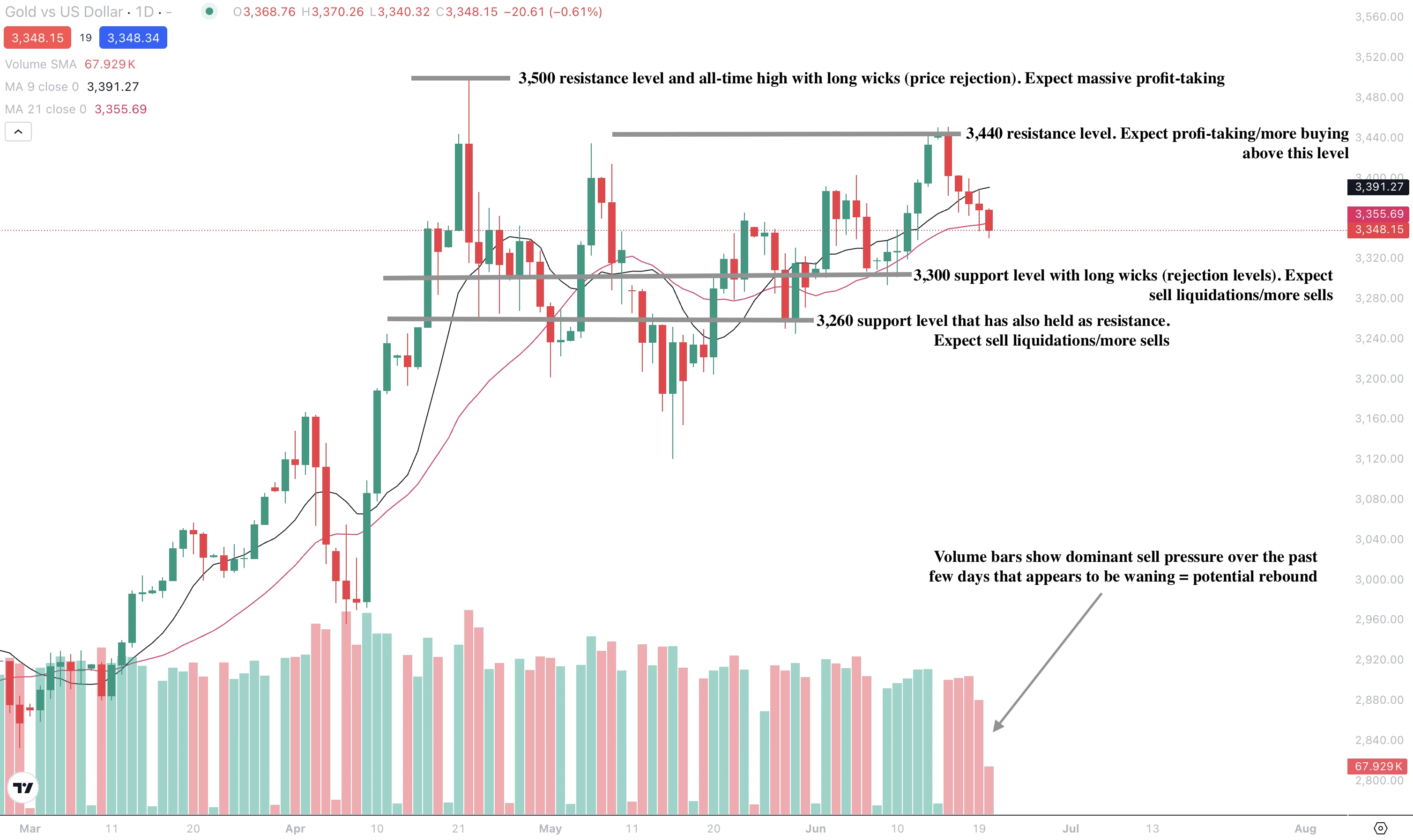 Несмотря на все геополитические фейерверки, золото торгуется в узком диапазоне от $3,340 до $3,400 — явно не похоже на поведение актива под давлением.