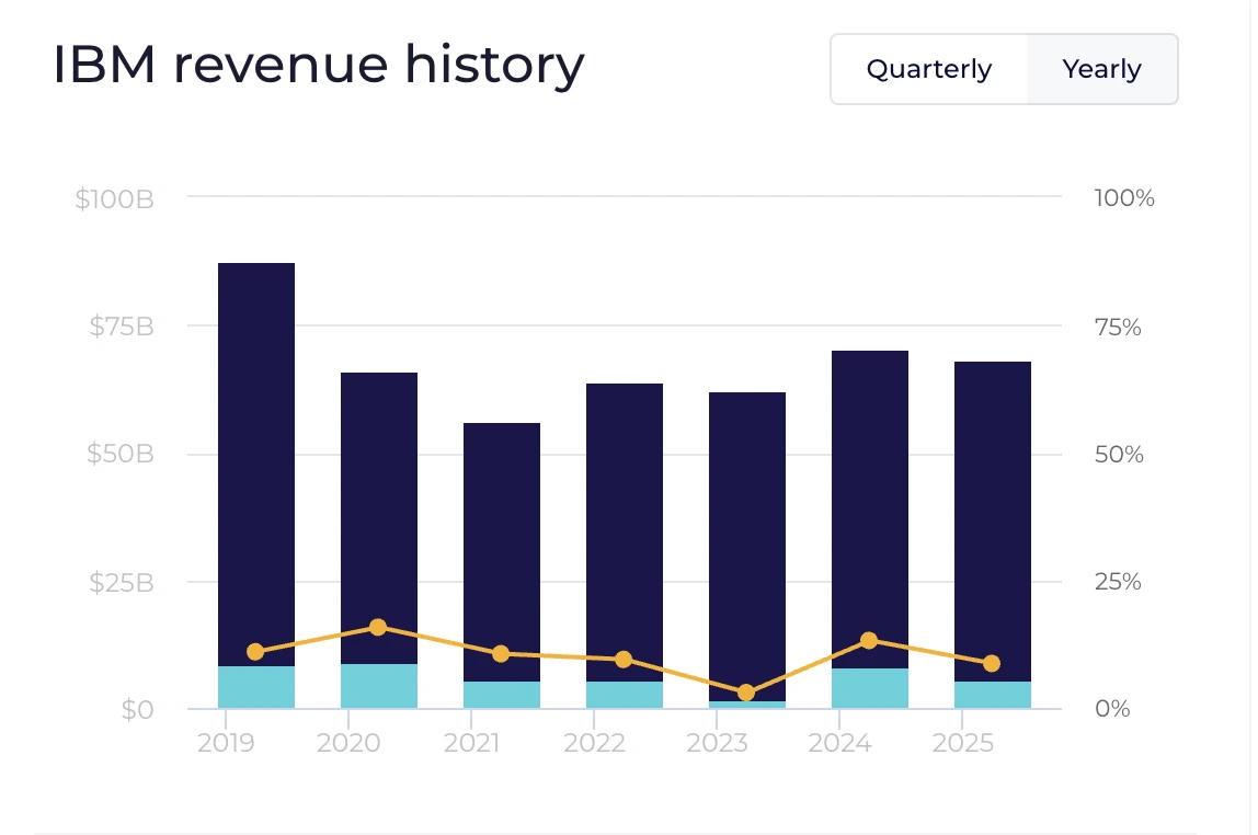 Его цель — обрабатывать в 20 000 раз больше операций, чем сегодняшние квантовые машины. Это не просто постепенный прогресс — это настоящая технологическая революция — если все получится. Рынок положительно отреагировал, и инвесторы активно включились в игру. С годовыми доходами в $62,8 млрд, IBM выглядит гораздо более устоявшейся, чем некоторые из ее более мелких и ярких конкурентов.