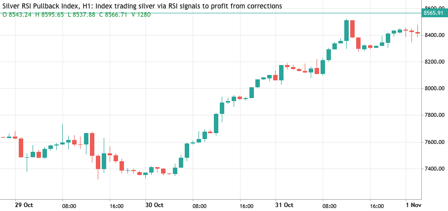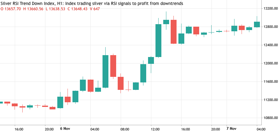 ABD seçimlerinin ardından gümüş %5 düştü. Bu dönemde, Silver RSI Trend Aşağı Endeksi, bu ayı hareketini dikkate değer bir %15 kazanca dönüştürdü, gümüşün performansını üç katına çıkardı.
