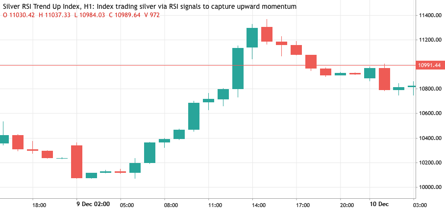 Gümüş %4.5 yükseldiğinde, Silver RSI Trend Yukarı Endeksi bu ivmeden faydalanarak %12.9 kazanç sağladı ve gümüşün getirisini neredeyse üç katına çıkardı.