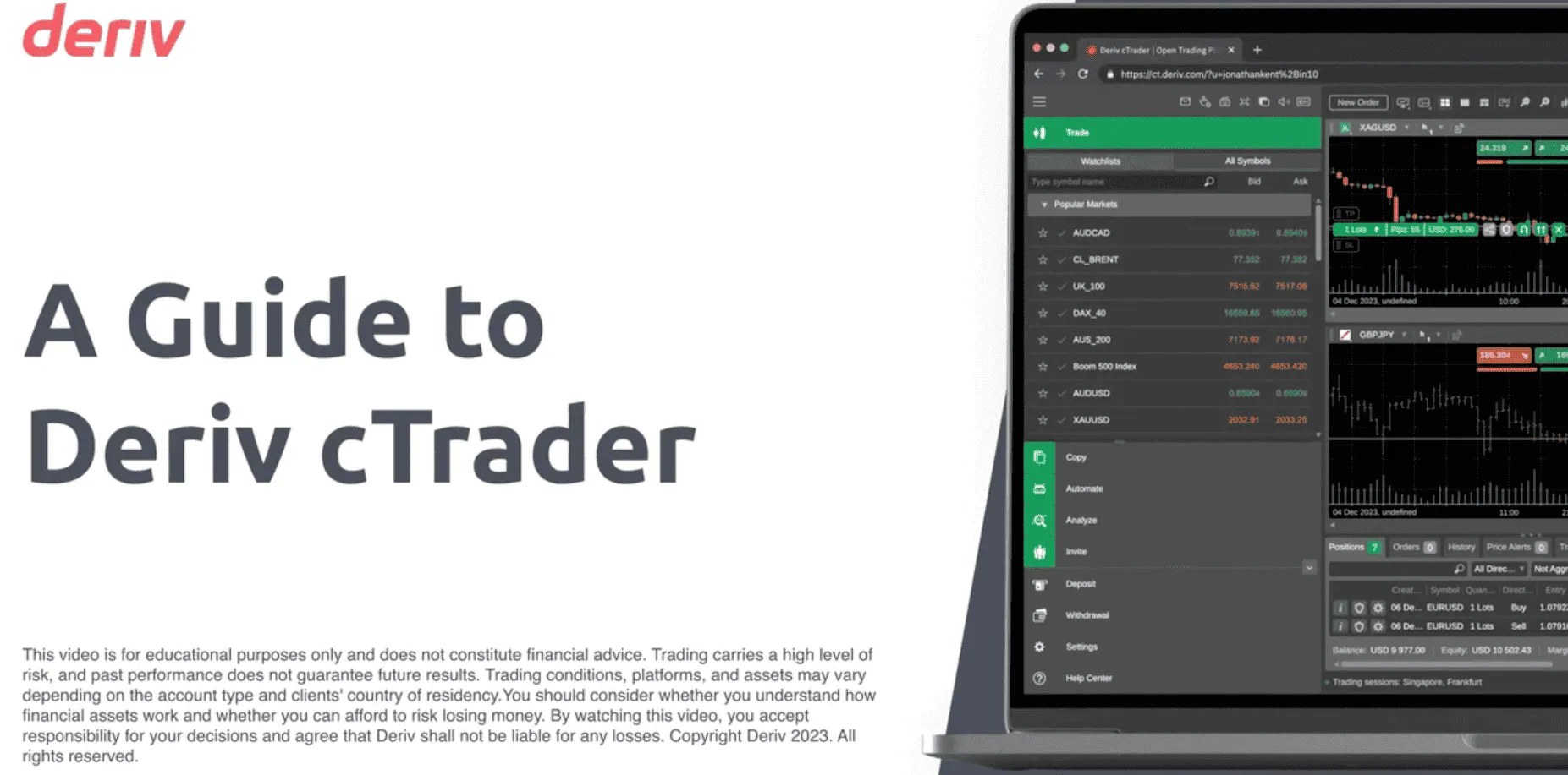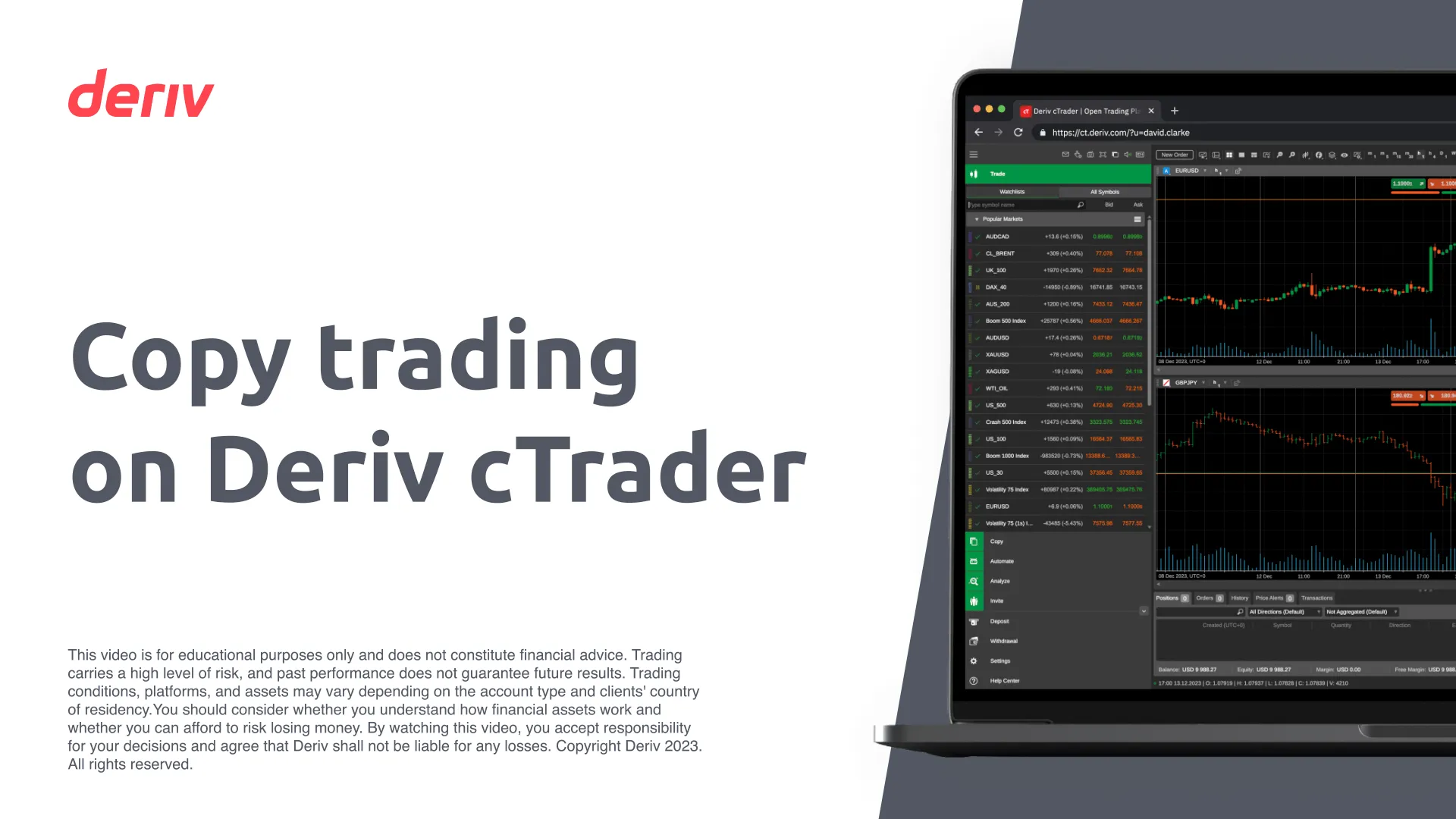 Deriv cTraderda nusxa ko`chirish savdosi