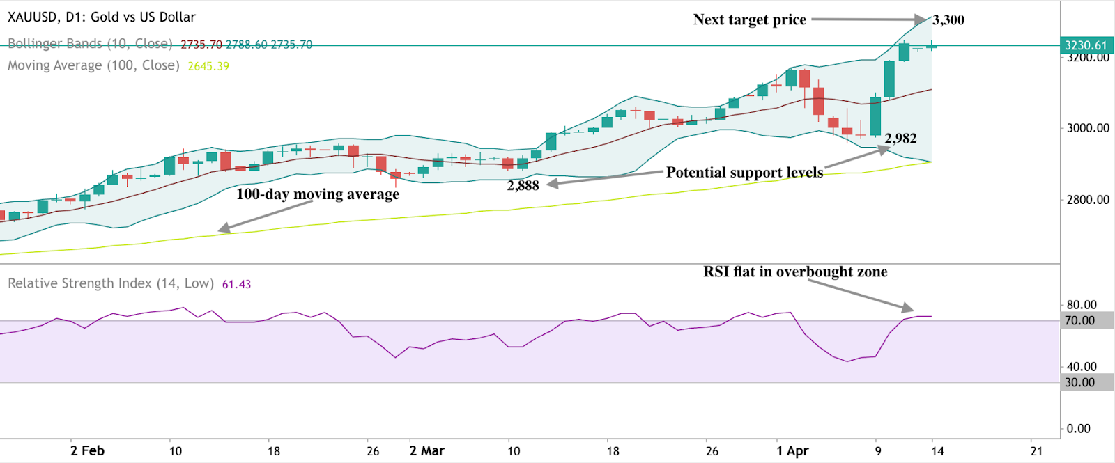 Vàng đạt mức kỷ lục 3.245 USD khi Chỉ số Đô la Mỹ giảm xuống dưới 100 lần đầu tiên trong ba năm. Goldman Sachs hiện dự đoán vàng sẽ đạt 3.700 USD vào năm 2025.