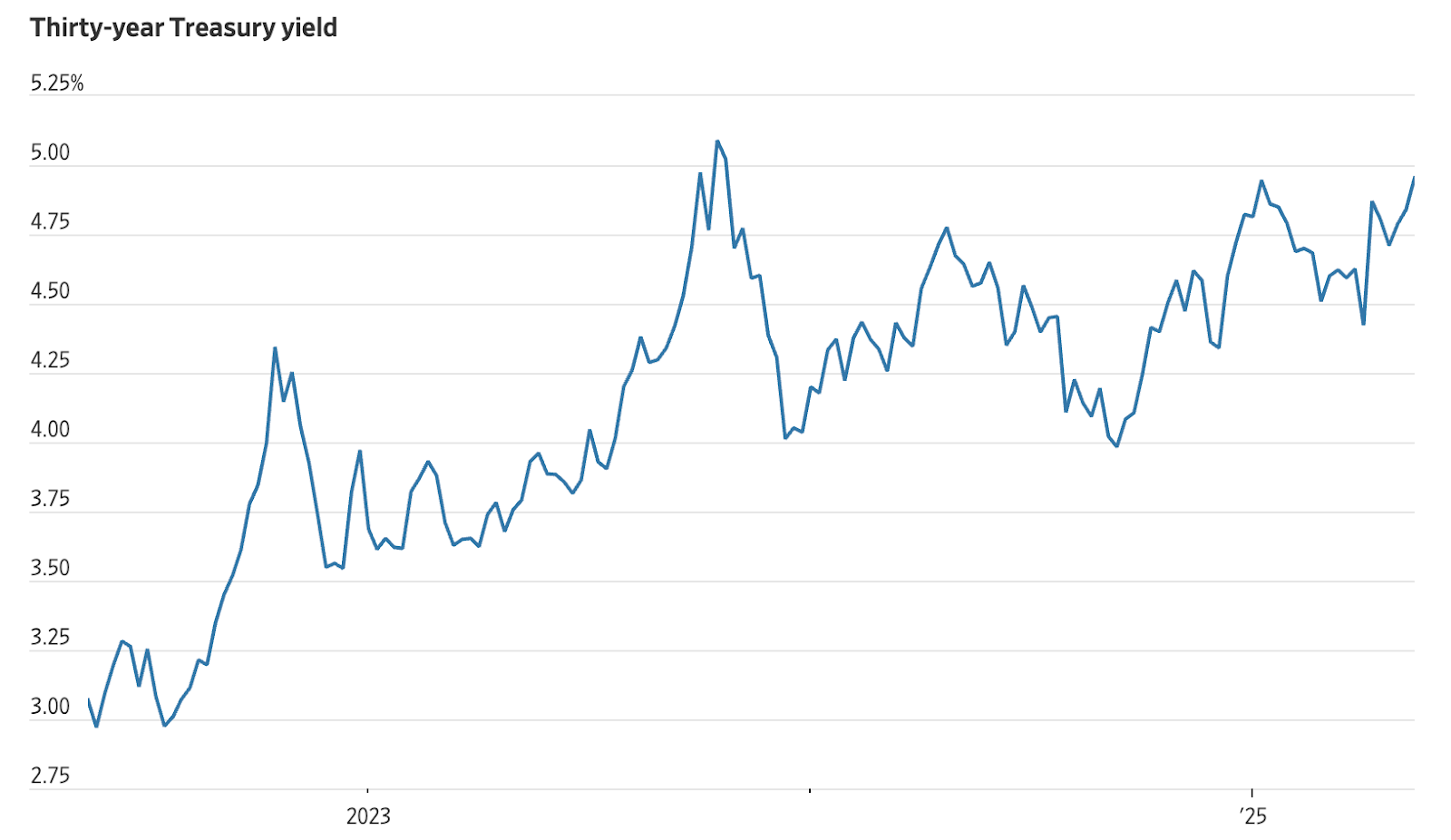替代文本:图表显示近期美国。 国债收益率的飙升,30年期债券突破5%,反映投资者对美国。 财政稳定性的日益担忧。